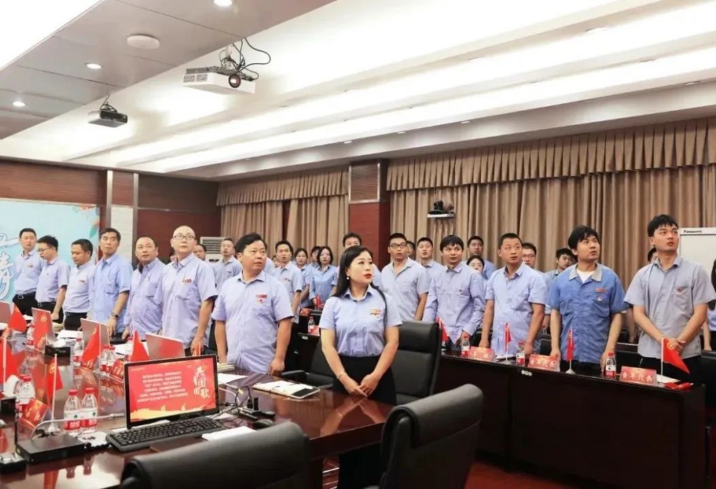 鮮艷的團(tuán)旗下,集團(tuán)黨委委員、副總裁朱宇杉帶領(lǐng)全體團(tuán)員青年重溫入團(tuán)誓詞。